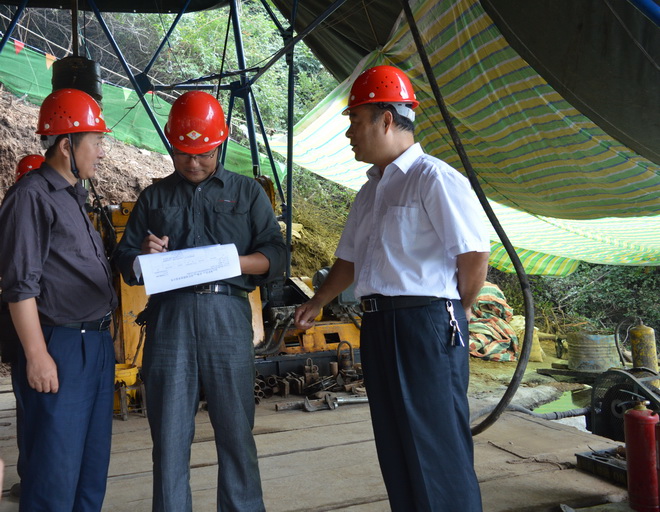 8月18日小秦嶺金礦田成礦規(guī)律與深部成礦預(yù)測(cè)研究的深孔驗(yàn)證項(xiàng)目第二個(gè)鉆孔正式開(kāi)鉆,鉆孔設(shè)計(jì)孔深1880米。隊(duì)黨委書(shū)記兼副隊(duì)長(zhǎng)王戰(zhàn)社、紀(jì)委書(shū)記王和平及省基金辦、省地調(diào)中心等單位有關(guān)領(lǐng)導(dǎo)參加了開(kāi)工儀式。