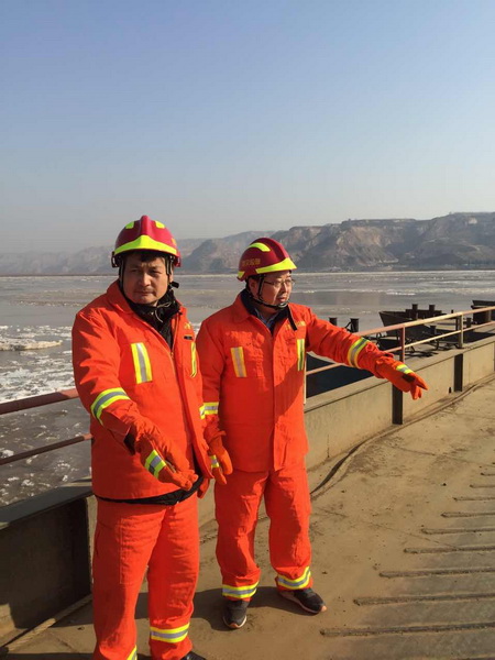 險情就是命令!1月17日17時,接到省突發(fā)地質(zhì)災(zāi)害應(yīng)急排查突擊總隊?wèi)?yīng)急響應(yīng)指令后,渭南支隊立即啟動應(yīng)急響應(yīng),迅速整裝集結(jié)。支隊長劉曉東、副支隊長王和平率領(lǐng)7名突擊隊員,攜帶應(yīng)急裝備,一路風(fēng)馳電掣,當(dāng)晚20時,比總隊要求時限提前兩個小時到達(dá)合陽縣洽川鎮(zhèn)集結(jié)地。抵達(dá)后,支隊長劉曉東、副支隊長王和平帶領(lǐng)突擊隊員立即奔赴“洽吳”黃河浮橋指定位置,進(jìn)入緊急臨戰(zhàn)狀態(tài)。