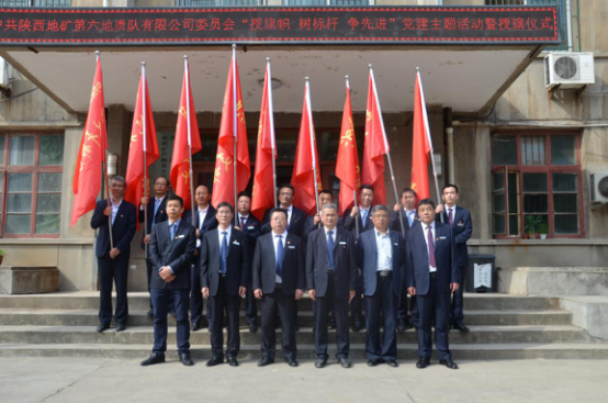 儀式上,黨委書記、執(zhí)行董事劉曉東分別向公司所屬7個黨支部、2個青年突擊隊授予“黨支部”旗幟和“青年突擊隊”旗幟。接旗后,地調(diào)所所長、黨支部書記李長壽代表7名黨支部書記、潼關(guān)礦開部青年突擊隊隊長唐升強代表青年突擊隊分別作了表態(tài)發(fā)言。