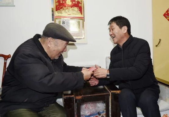 趙廷周走進(jìn)85歲高齡的退休職工賈兆元家中,與老人親切交談,噓寒問暖,仔細(xì)詢問老人的身體健康狀況??吹嚼先朔e極樂觀的良好心態(tài),趙廷周感到由衷高興,將慰問金交到賈老手中并祝福春節(jié)快樂。隨后,趙廷周看望慰問了退休職工任進(jìn)才。他親切詢問老人的家庭生活和身體情況,了解子女工作情況,得知老人患有腦梗及帕金森綜合癥時,囑咐老人子女要照顧好任老的生活起居,讓老人安享晚年。