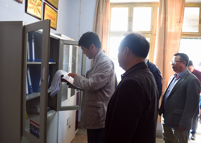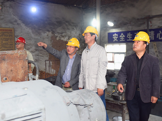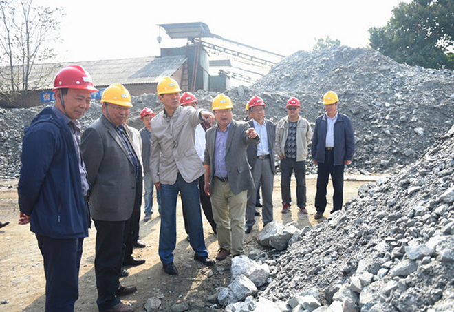 隨后,趙董事長一行在隊長劉曉東、隊黨委書記王戰(zhàn)社和總工白和的陪同下驅(qū)車前往我隊潼關(guān)興地公司秦泰選廠。趙董事長來到礦石堆場,蹲下身子仔細察看礦石品位,詢問礦山開采情況,走進車間檢查生產(chǎn)加工及設(shè)備運轉(zhuǎn)情況。向選廠負責人了解職工收入,叮囑要牢固樹立安全生產(chǎn)意識;與新聘大學生親切交談,關(guān)心他們的工作生活,勉勵大家安心工作。趙董事長還走進興地公司黨員活動室,檢查黨支部“兩學一做”學習教育開展情況,翻看黨員學習筆記,并就深入開展學習教育提出了要求。