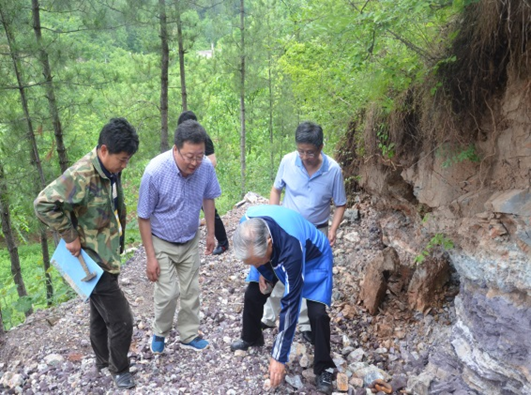 下午二點(diǎn)左右,老部長一行在劉曉東隊(duì)長和總工白和的陪同下到達(dá)洛南縣石門鎮(zhèn)項(xiàng)目部駐地,雖然年近八旬,但精神矍鑠,神采奕奕,不顧鞍馬勞頓,即讓技術(shù)人員將圖紙攤在了汽車引擎蓋上,聽取了隊(duì)長劉曉東、總工白和對(duì)商洛地區(qū)紫瑪瑙玉石礦賦存情況及全省寶玉石礦調(diào)查工作進(jìn)展的匯報(bào)。
