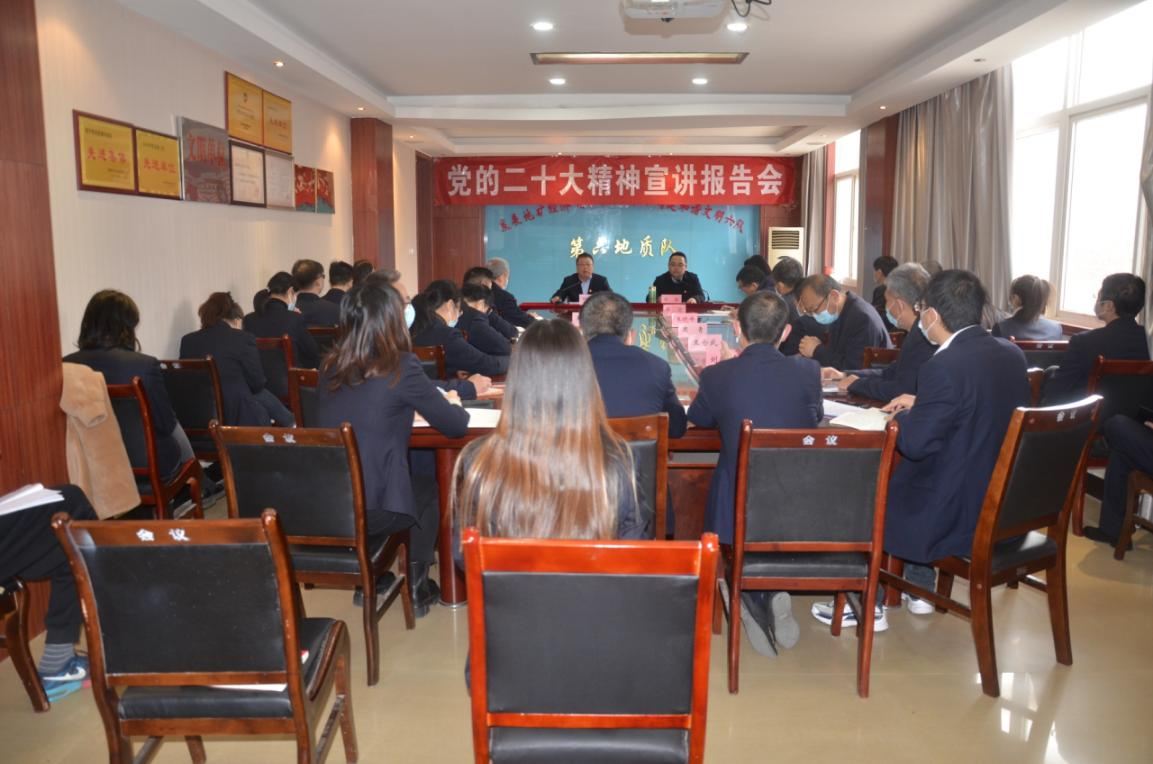 11月29日,陜西地礦集團公司黨的二十大精神宣講團成員、集團公司黨委委員、總會計師劉勐帶隊來我公司宣講黨的二十大精神。公司黨委書記、執(zhí)行董事劉曉東主持會議。公司領(lǐng)導(dǎo)班子成員以及黨員干部共計40余人參加會議。