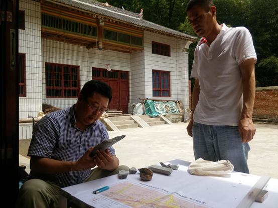 在洛南縣瑪瑙石礦區(qū),隊(duì)領(lǐng)導(dǎo)與項(xiàng)目技術(shù)人員圍坐在農(nóng)家小院,攤開圖紙,一起對(duì)工作區(qū)寶石礦成礦條件進(jìn)行分析研究,并深入工區(qū)一線進(jìn)行了實(shí)地踏勘。隨后又馬不停蹄對(duì)商州市藍(lán)田玉礦工作靶區(qū)及當(dāng)?shù)卣陂_發(fā)的藍(lán)田玉礦企業(yè)的采礦工藝和流程進(jìn)行了考察。