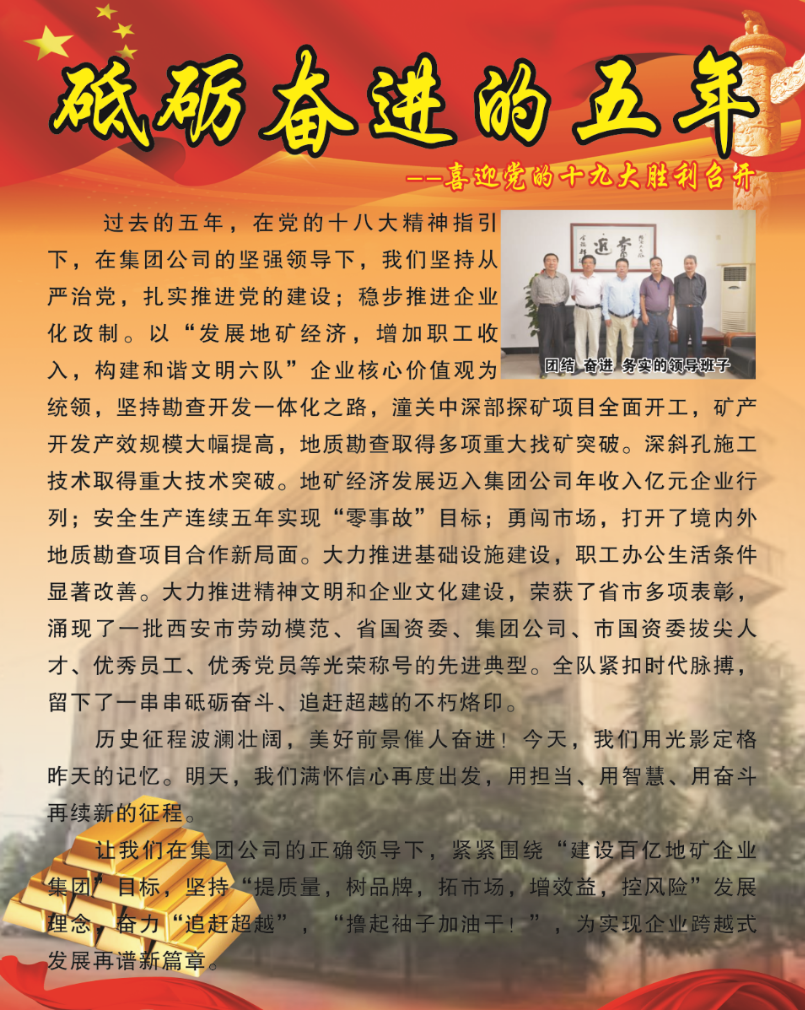 下一篇:我隊“小秦嶺金礦整裝勘查區(qū)1:5萬太峪口幅礦調(diào)” 項目野外驗收獲優(yōu)秀