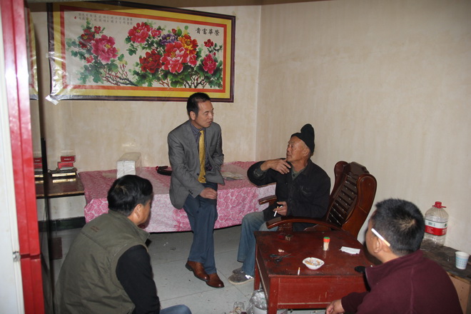 圖為隊(duì)長(zhǎng)助理王倉武同志關(guān)切地詢問老人的飲食起居和身體情況