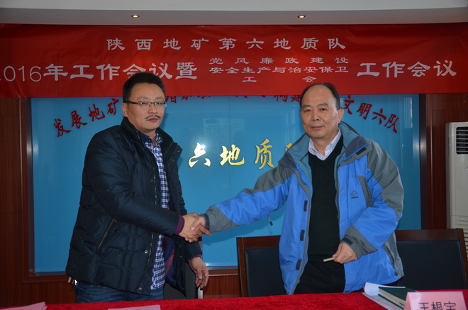 本次會(huì)議上,隊(duì)長王根寶代表隊(duì)與5個(gè)經(jīng)營實(shí)體分別簽訂了2016年經(jīng)營目標(biāo)責(zé)任書,隊(duì)黨委書記王戰(zhàn)社代表隊(duì)與各部門、經(jīng)營實(shí)體分別簽訂了2016年安全生產(chǎn)與治安保衛(wèi)責(zé)任書。會(huì)議同時(shí)分別對(duì)2015年在創(chuàng)先爭優(yōu)活動(dòng)涌現(xiàn)出的先進(jìn)單位、先進(jìn)班子先進(jìn)職工、優(yōu)秀干部、突出貢獻(xiàn)者,對(duì)在“安康杯”競賽中涌現(xiàn)出的先進(jìn)單位、先進(jìn)班組、坑口、先進(jìn)個(gè)人及在工會(huì)工作中涌現(xiàn)出的先進(jìn)分會(huì)、先進(jìn)分會(huì)小組、工會(huì)積極分子、優(yōu)秀會(huì)員進(jìn)行了表彰。