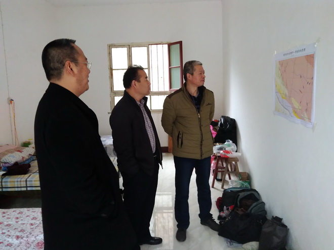 在曹坪駐地,王書記先后到食堂、宿舍察看,詳細(xì)詢問大家的生活飲食、住宿辦公條件情況。在和項(xiàng)目組干部職工座談時(shí),王書記說,開展“兩學(xué)一做”學(xué)習(xí)教育,要結(jié)合工作開展學(xué),結(jié)合我隊(duì)的發(fā)展學(xué),結(jié)合自身的成長(zhǎng)學(xué),不斷提高自己的政治和專業(yè)素質(zhì)。咱們黨員干部要給職工起好模范帶頭作用,榜樣的力量是無窮的,使隊(duì)伍充滿始終充滿正能量。要高度重視抓好野外安全生產(chǎn)。注意搞好與駐地地方等外部關(guān)系,注意抓好飲食衛(wèi)生,讓大家吃好,才能工作起來有勁頭。