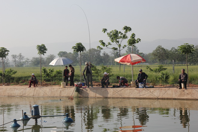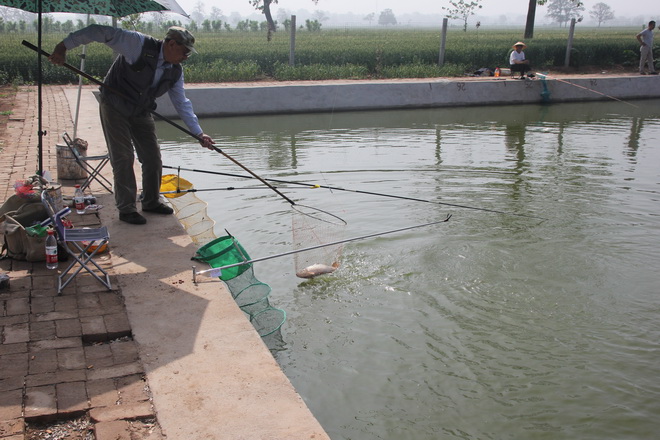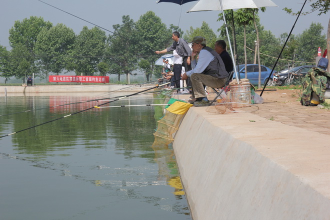 比賽在紙李農(nóng)家樂舉行。當(dāng)天萬里晴空,風(fēng)光如畫。上午8:30分比賽開始,選手們紛紛放線啟釣,一陣忙碌,相繼投入了緊張的比賽中,相鄰的選手們還不時(shí)地交流心得,切磋技藝。他們,或站、或坐,或怡然自得、或凝神屏氣,目不轉(zhuǎn)睛的盯著水面,十分專注地觀察著魚漂,甩竿,溜魚,換餌等動(dòng)作嫻熟老練。每當(dāng)有選手釣到魚時(shí),都會(huì)讓賽場熱鬧好一陣。選手們他們用自己精湛的釣魚技巧和向上的精神風(fēng)貌演繹了一場精彩的釣魚比賽。比賽現(xiàn)場始終彌漫著歡快的氣氛。